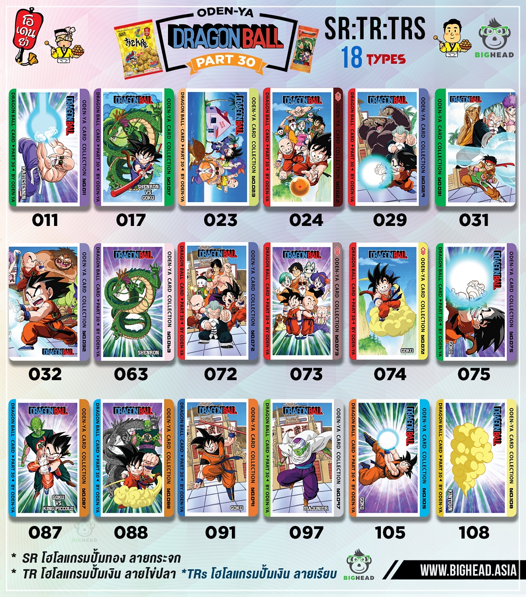 ขนมโอเดนย่า รสซีฟู้ด รุ่นแถมฟรี! การ์ดโอเดนย่า ดราก้อนบอล ภาคเด็ก พาร์ท 30 ทุกซองแถมฟรี! การ์ดดราก้อนบอล ภาคเด็ก จำนวน 2 ใบ มีให้สะสมกว่า 170 แบบ